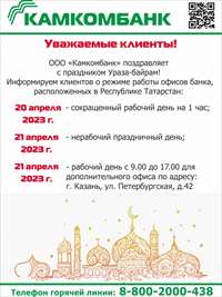 29.04.2023г. дополнительный офис ООО "Камкомбанк" по адресу: г. Набережные Челны, пр-кт Набережночелнинский, д. 7 по техническим причинам не будет осуществлять обслуживание клиентов.