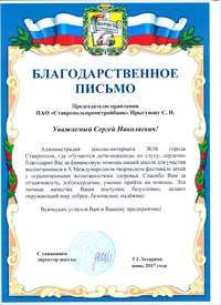 Ставропольпромстройбанк посетил торжественное мероприятие по случаю празднования юбилея 95-тилетия школы-интерната № 36 г. Ставрополя.